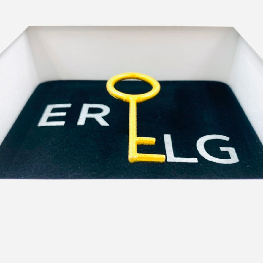 Wer hätte ihn nicht gerne, den Schlüssel zum Erfolg? Ein typographisches Objektbild, das allen gefallen sollte, die vor einer wichtigen neuen Aufgabe stehen und das berühmte Quäntchen Glück gebrauchen können. Der gold-legierte Schlüssel schwebt über dem Samtkissen und wird sicher der bzw. dem Beschenkten helfen, zukünftig besonders erfolgreich zu sein.